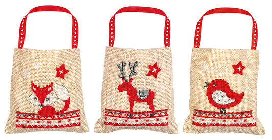 Set de 3 Bolsitas de Regalo en Punto de Cruz "Animales de Navidad" - Vervaco