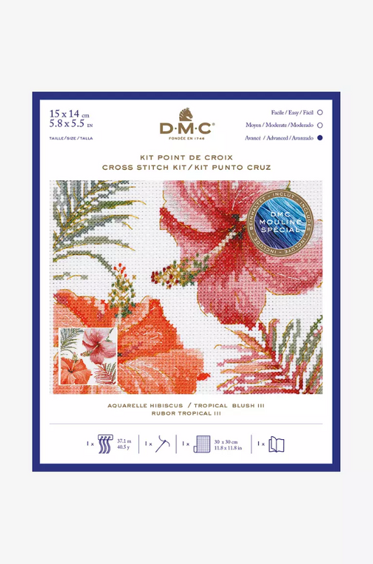 Kit de Punto de Cruz DMC "Acuarela Hibiscos" - BL1169/76