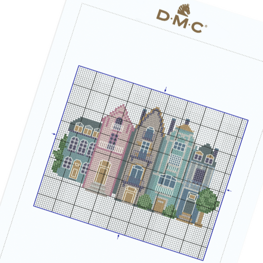 Patrón Gratis de Punto de Cruz "Casas de Ciudad" - DMC