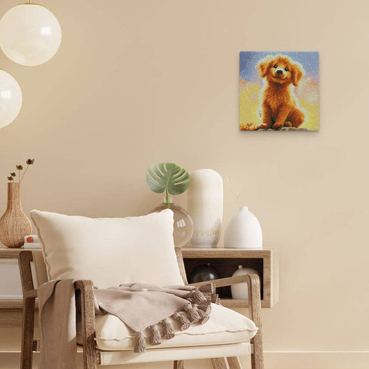Kit de Punto Diamante Figured’Art "Cachorro de Golden Retriever" (Lienzo con Bastidor 25×25 cm)