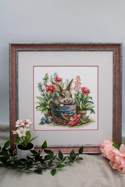 Kit de Punto de Cruz Aine "Conejito Floreciente" - A1030