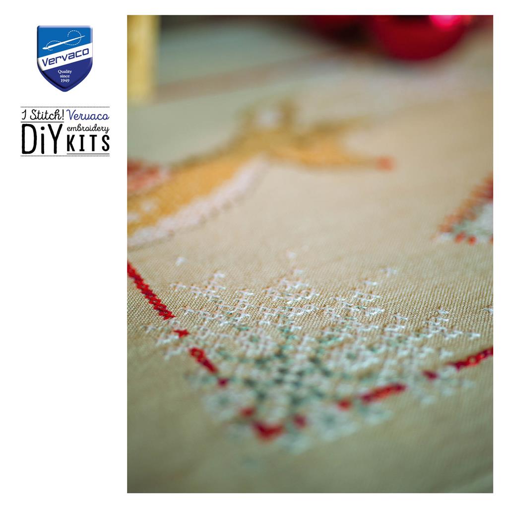 Camino de Mesa en Punto de Cruz "Reno con Espíritu Navideño" - Vervaco