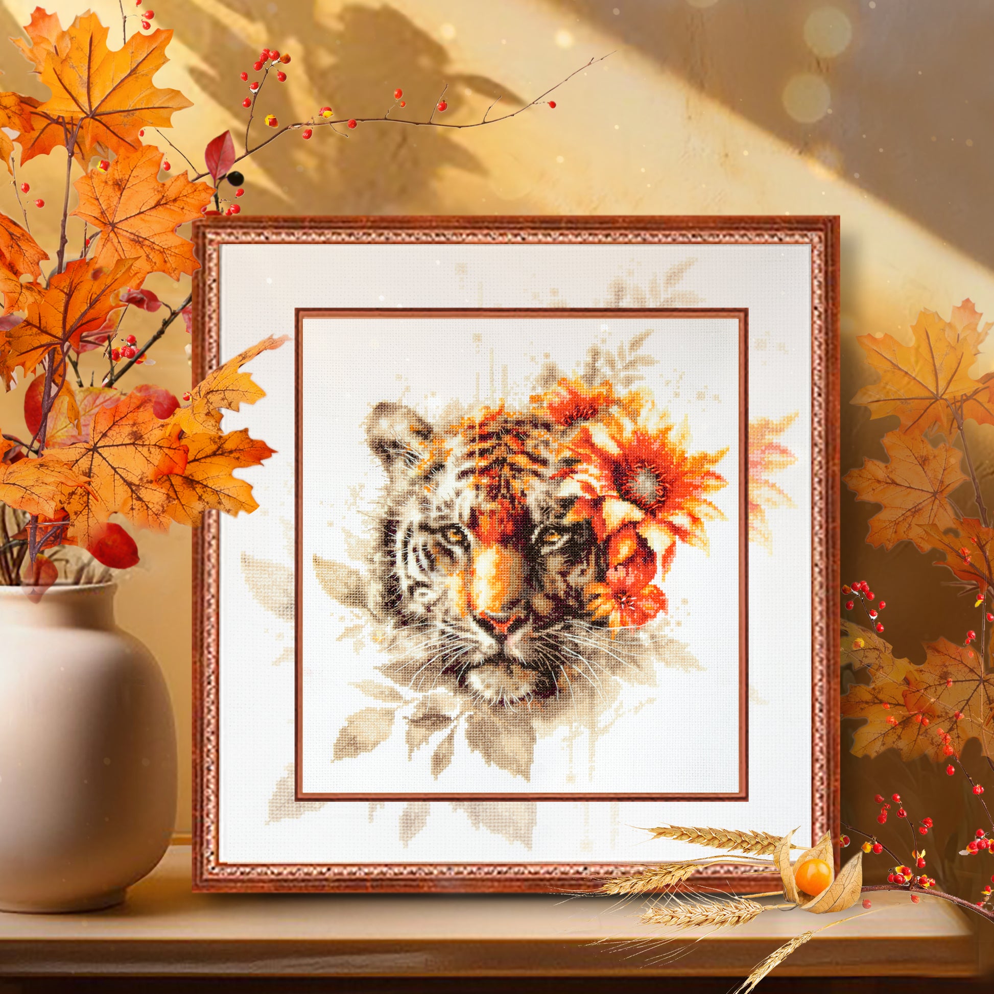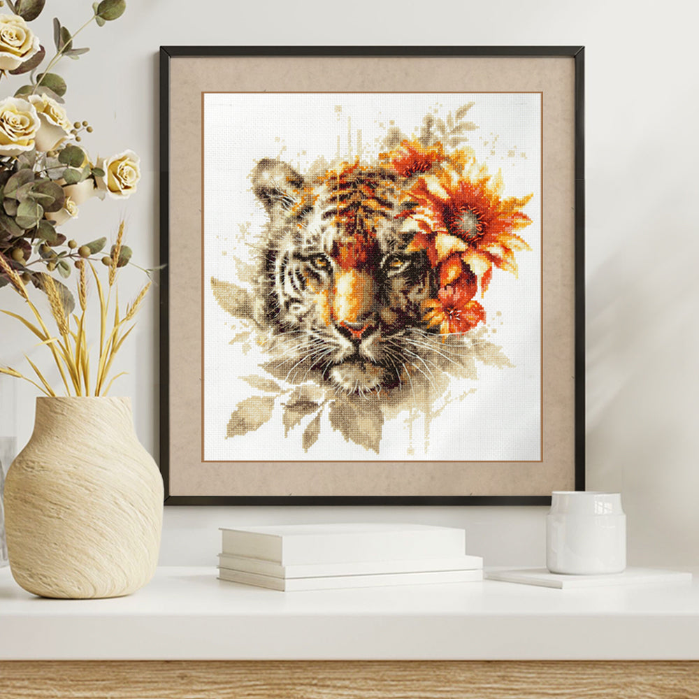 Captura la fuerza y la elegancia salvaje con este kit completo de punto de cruz de Magic Needle, que presenta el imponente rostro de un tigre de Bengala rodeado de motivos florales en tonos cálidos. La combinación de la mirada intensa del felino con pinceladas de color otoñal crea un diseño expresivo y moderno, ideal para quienes disfrutan de bordados con carácter y presencia artística.