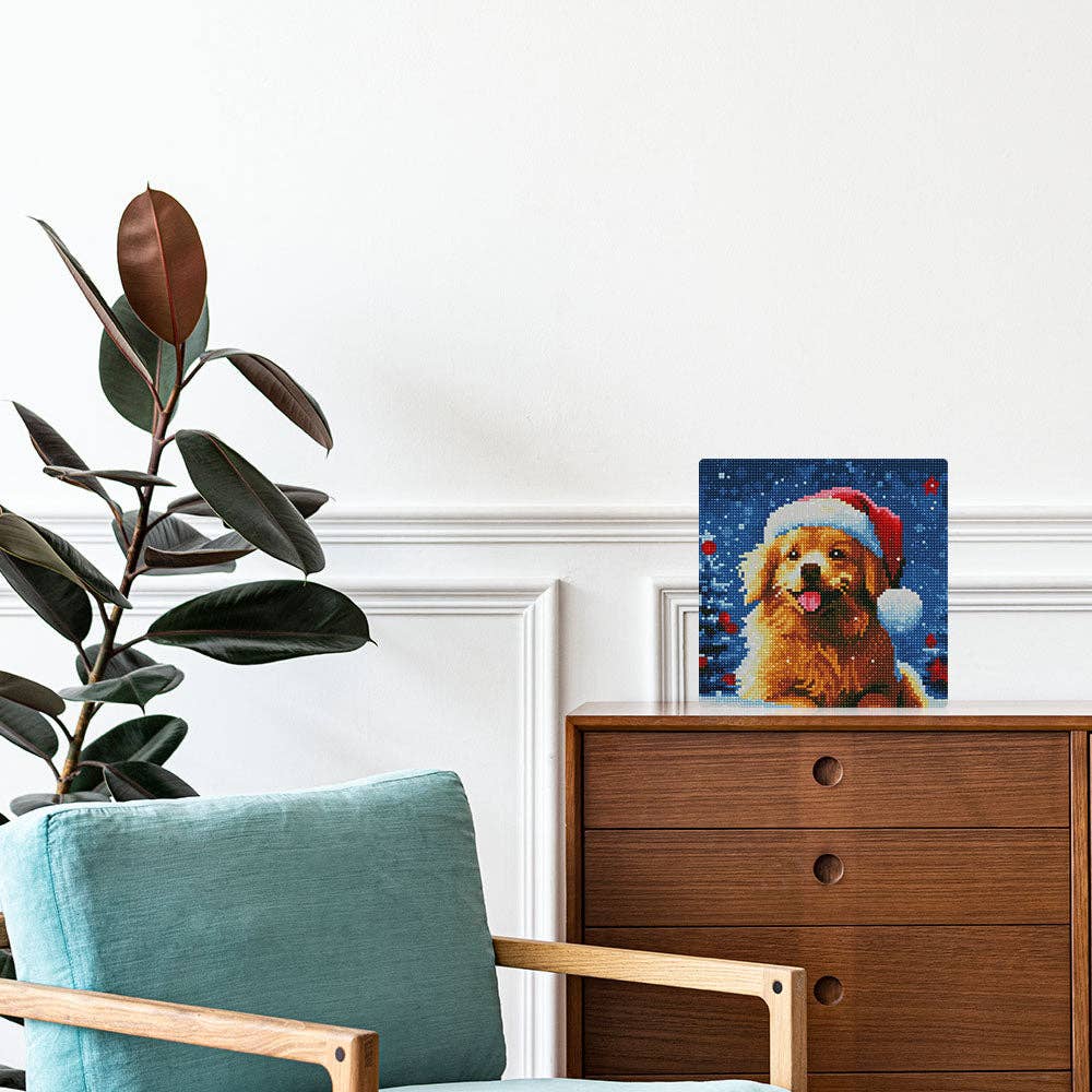 Kit de Punto Diamante Figured’Art "Perro Juguetón en Navidad" 25×25 cm