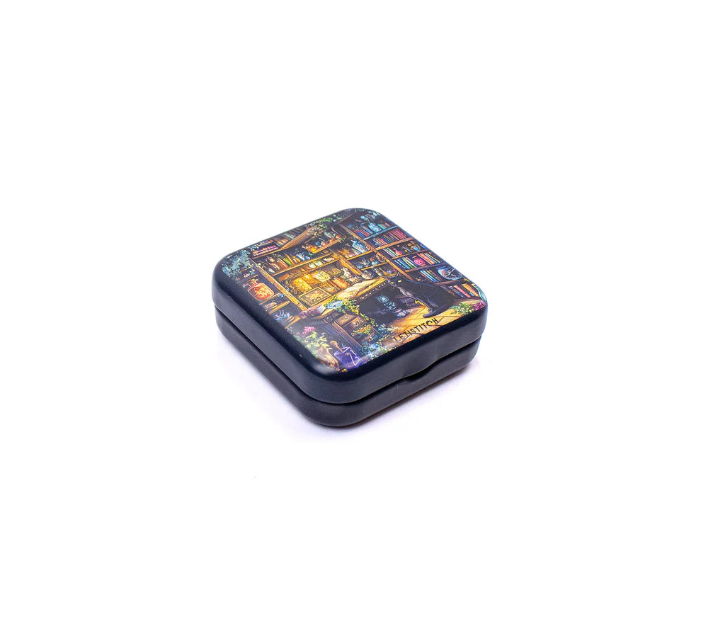 Mantén tus agujas y alfileres siempre organizados con la Caja Magnética para Agujas Letistitch “Charmed Library”. Inspirada en el encanto de una biblioteca mágica, esta preciosa caja metálica muestra una escena iluminada llena de libros, frascos y un gato negro misterioso, evocando el ambiente acogedor de un taller de hechicería o estudio encantado.