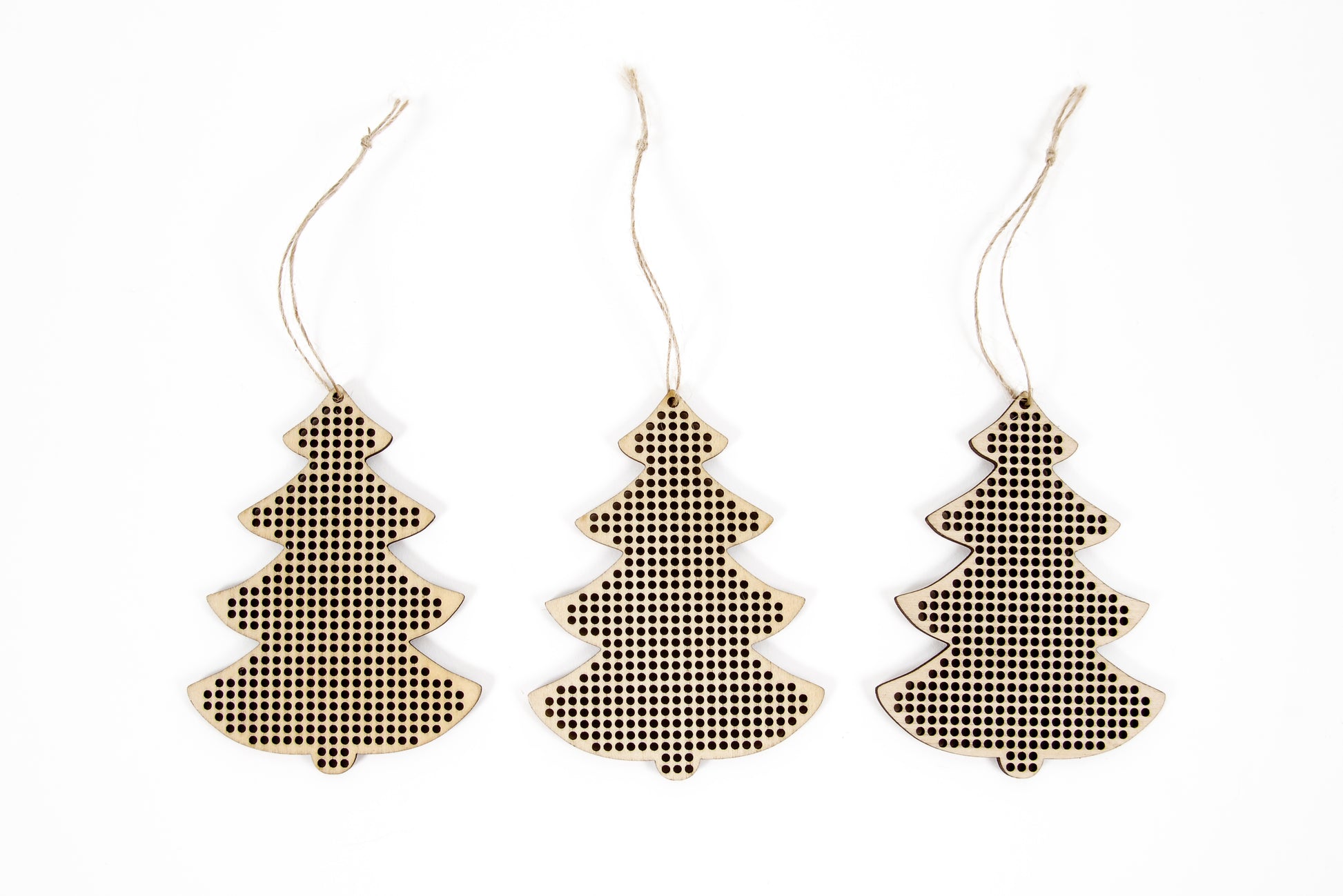 Adornos de Madera Perforada para Bordar DMC – Árbol (x3)