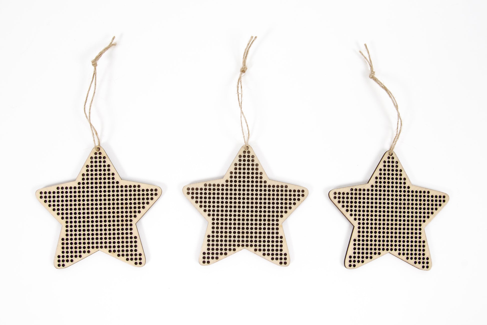 Adornos de Madera Perforada para Bordar DMC – Estrella (x3)