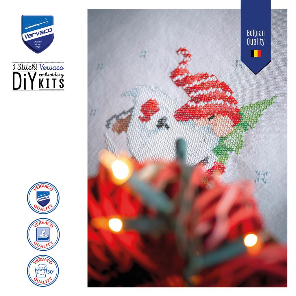 Decora tu mesa con un aire cálido y festivo gracias al kit de punto de cruz “Gnomos Navideños” de Vervaco. Este encantador diseño presenta simpáticos gnomos vestidos para el invierno, repartidos de forma equilibrada sobre el centro de mesa, creando una composición alegre y acogedora ideal para la Navidad.