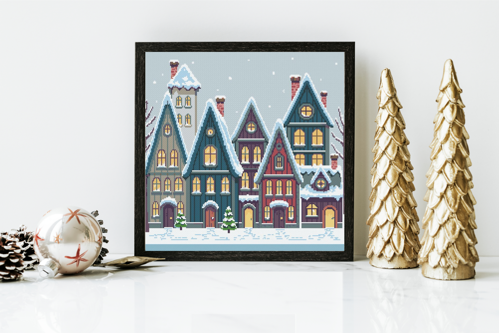 Perfecto para proyectos de bordado de invierno, decoración navideña o para crear una pieza artesanal única, este patrón de punto de cruz contado es ideal para quienes disfrutan bordando pueblos invernales, paisajes nevados y escenas acogedoras de invierno.