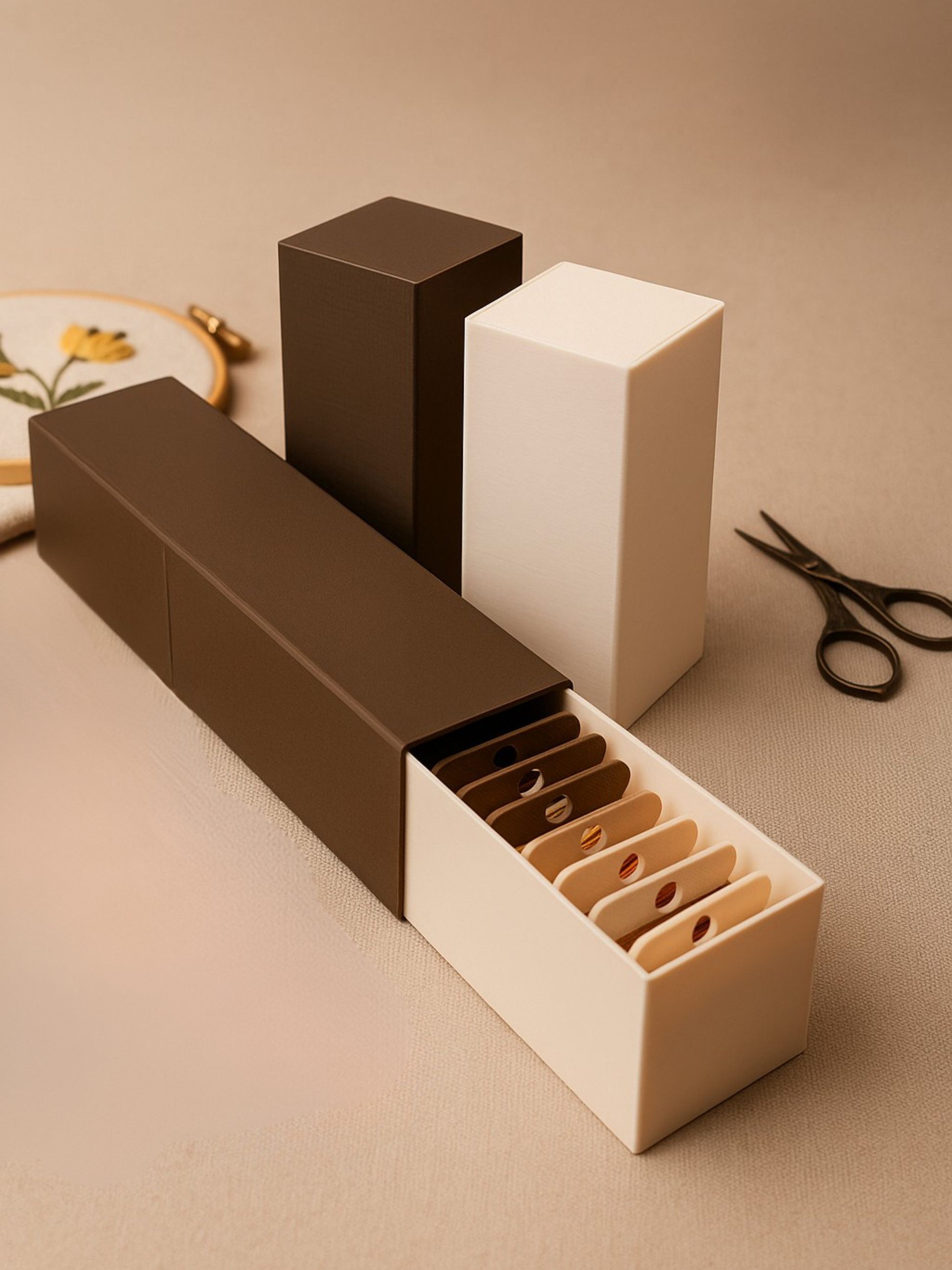 Organiza tus hilos favoritos con esta caja exclusiva de ElMundoEnCruz. Totalmente personalizable en color exterior e interior, esta caja estilo alargada ha sido diseñada para ser compacta, ligera y muy funcional, perfecta para llevar tus hilos a cualquier parte sin perder el orden.