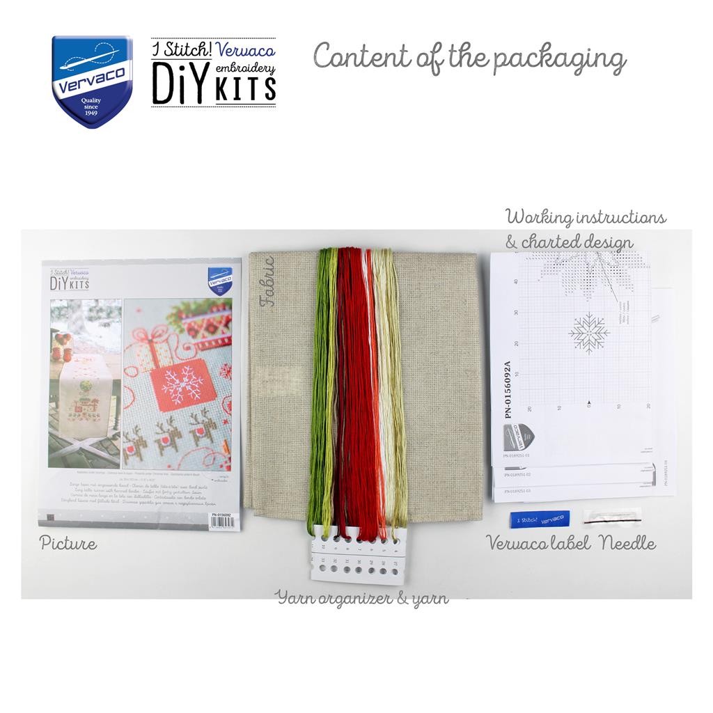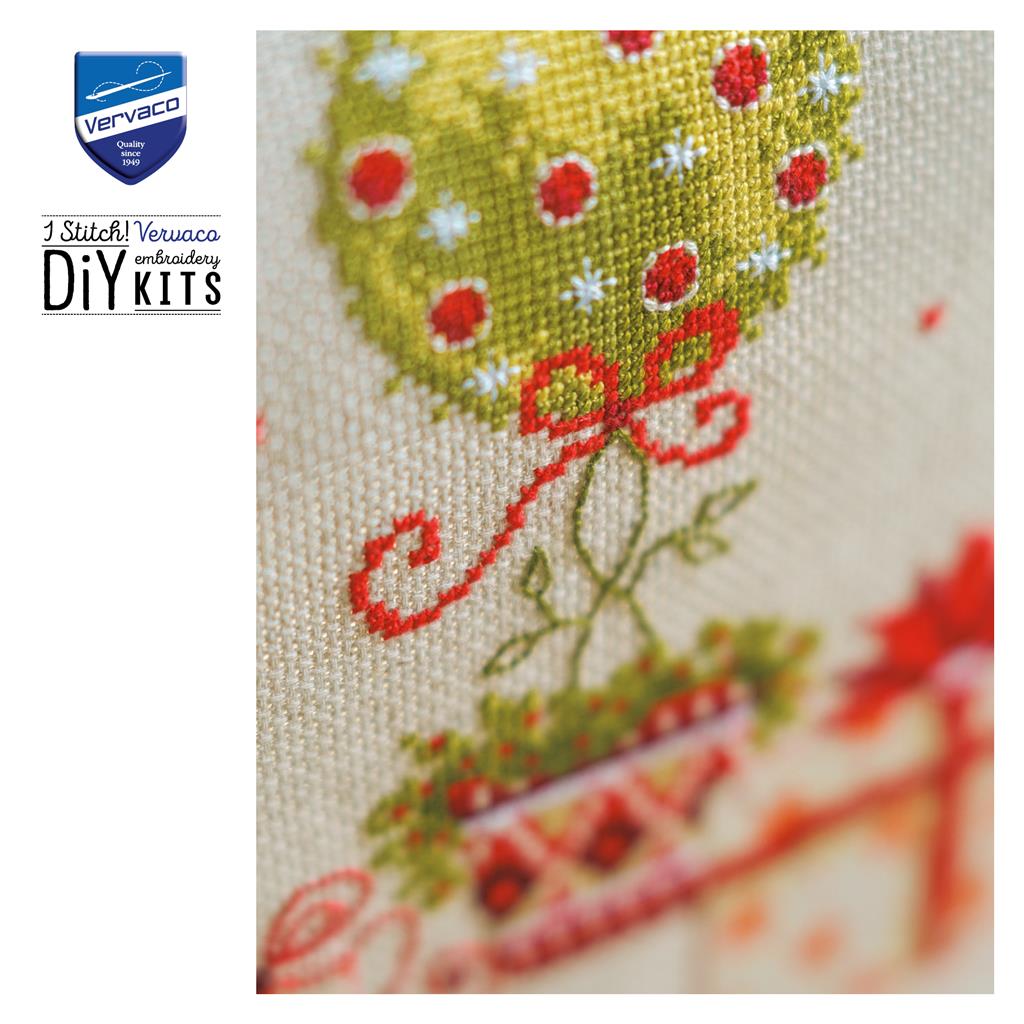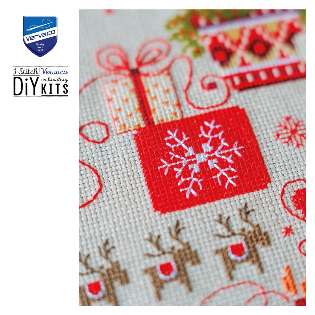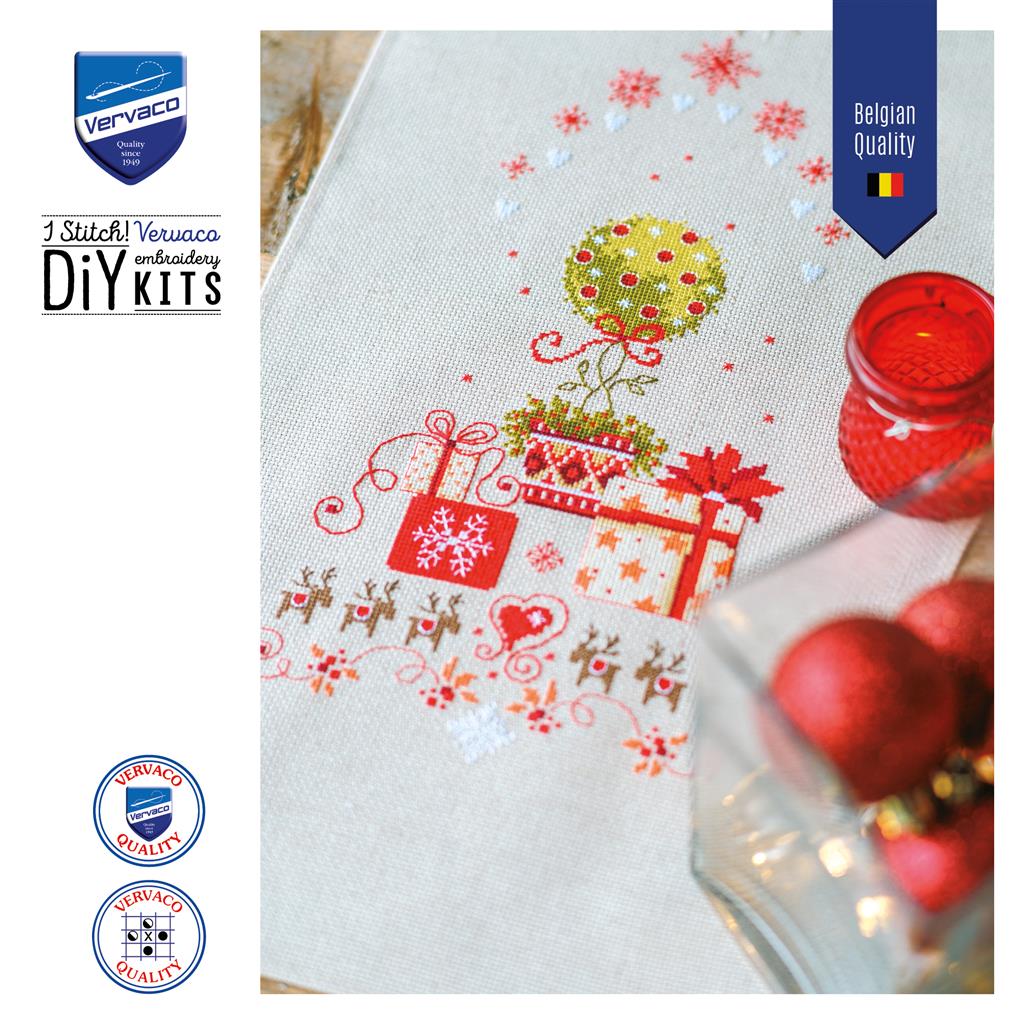 Decora tu mesa con un ambiente cálido y festivo gracias al kit de punto de cruz “Regalos bajo el árbol” de Vervaco. Este elegante diseño navideño representa una cuidada composición de regalos envueltos, detalles florales y motivos clásicos de Navidad, creando una escena equilibrada y acogedora que realza cualquier mesa durante las fiestas.