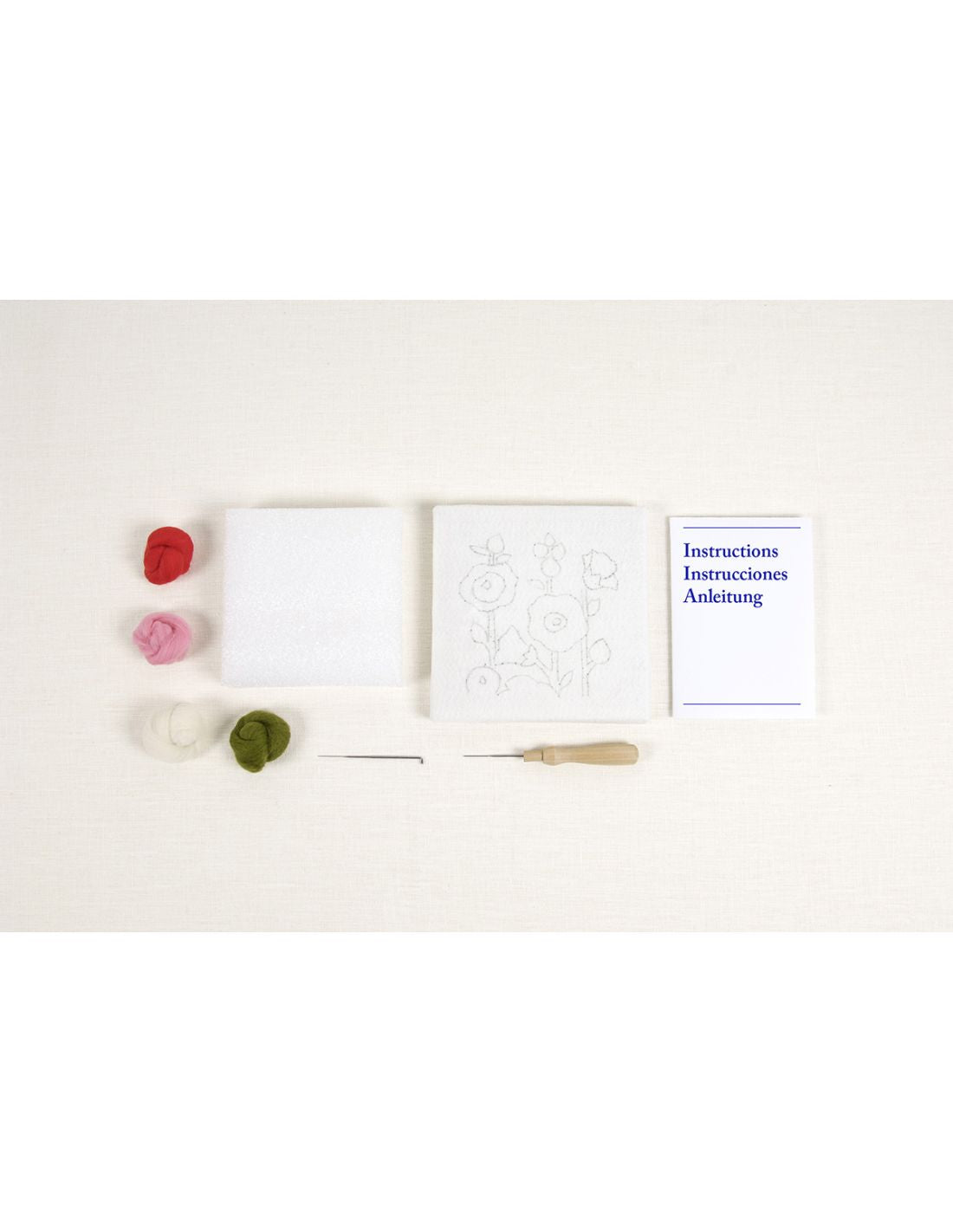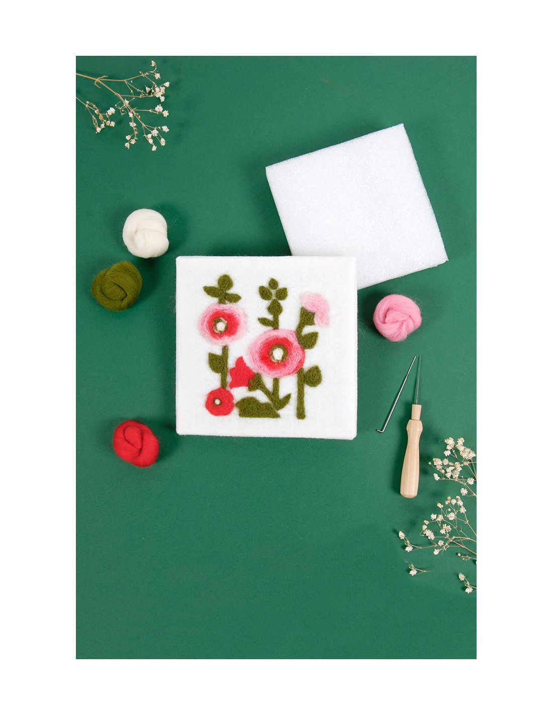 El Kit de Fieltrar DMC “Malva Real” es un set completo para iniciarse en la técnica del needle felting y crear un precioso cuadro en lana cardada con un diseño floral moderno y delicado. El motivo representa rosas estilizadas en tonos rosados y rojos, acompañadas de hojas verdes, que evocan la frescura de un jardín en plena floración.