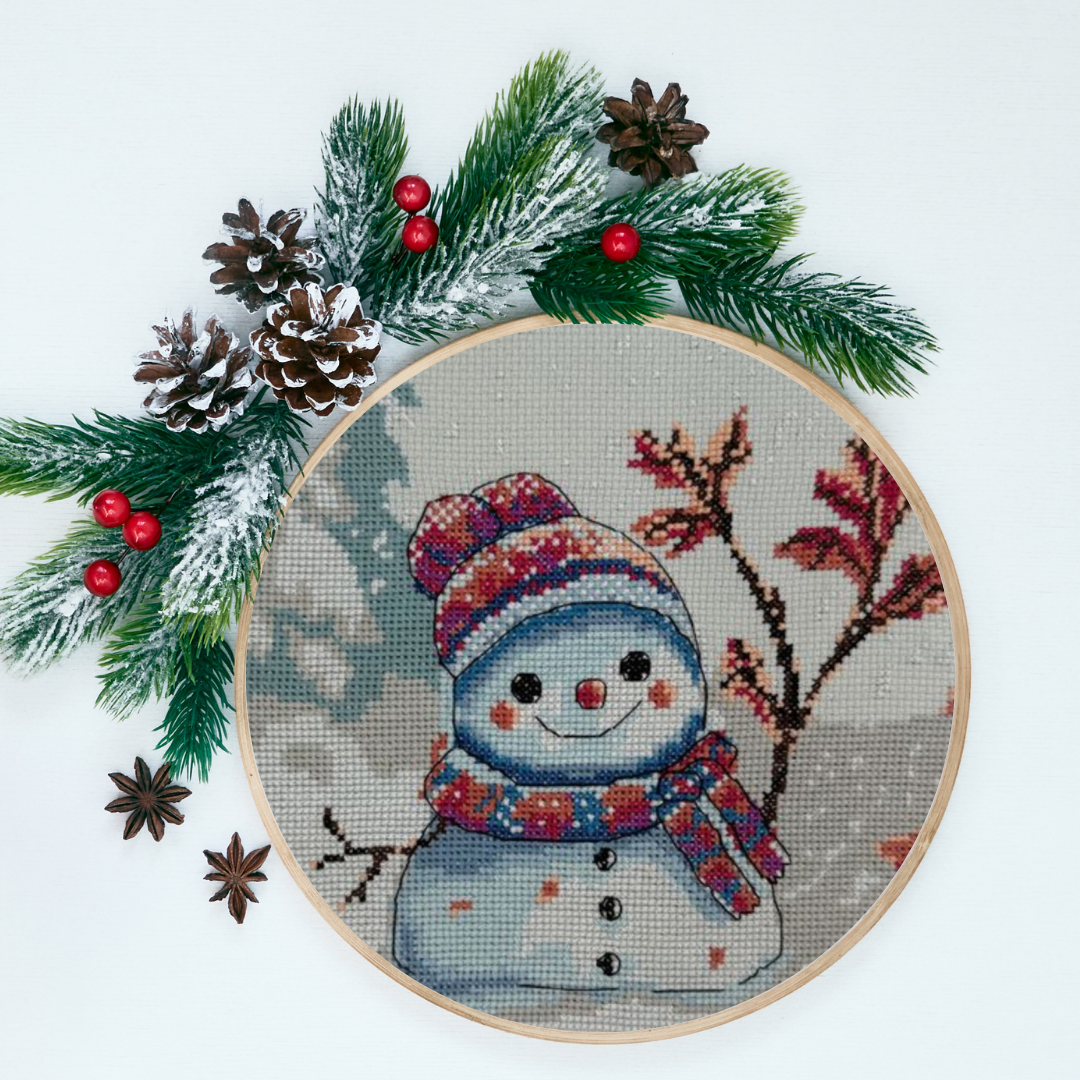 El kit “Invierno Torpe” de AINE presenta un entrañable muñeco de nieve con gesto simpático y un aire ligeramente torpe que transmite calidez y buen humor en pleno paisaje invernal. Un diseño lleno de encanto, perfecto para decorar en invierno o Navidad y para disfrutar de un bordado relajante y agradecido.