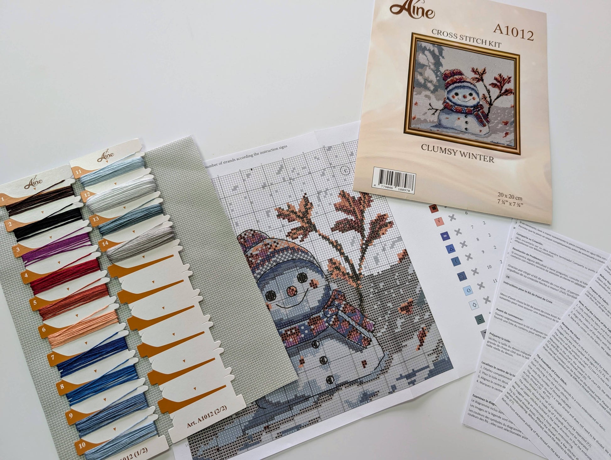 Se borda sobre tela Aida Zweigart gris de 14 ct, que realza los tonos fríos del invierno y aporta profundidad al diseño. Los hilos de algodón Anchor, cuidadosamente clasificados, ofrecen colores suaves y bien equilibrados, ideales para conseguir un acabado delicado y armonioso. Gracias a su gráfico a color claro, es un proyecto accesible y muy satisfactorio tanto para principiantes como para bordadores con experiencia.