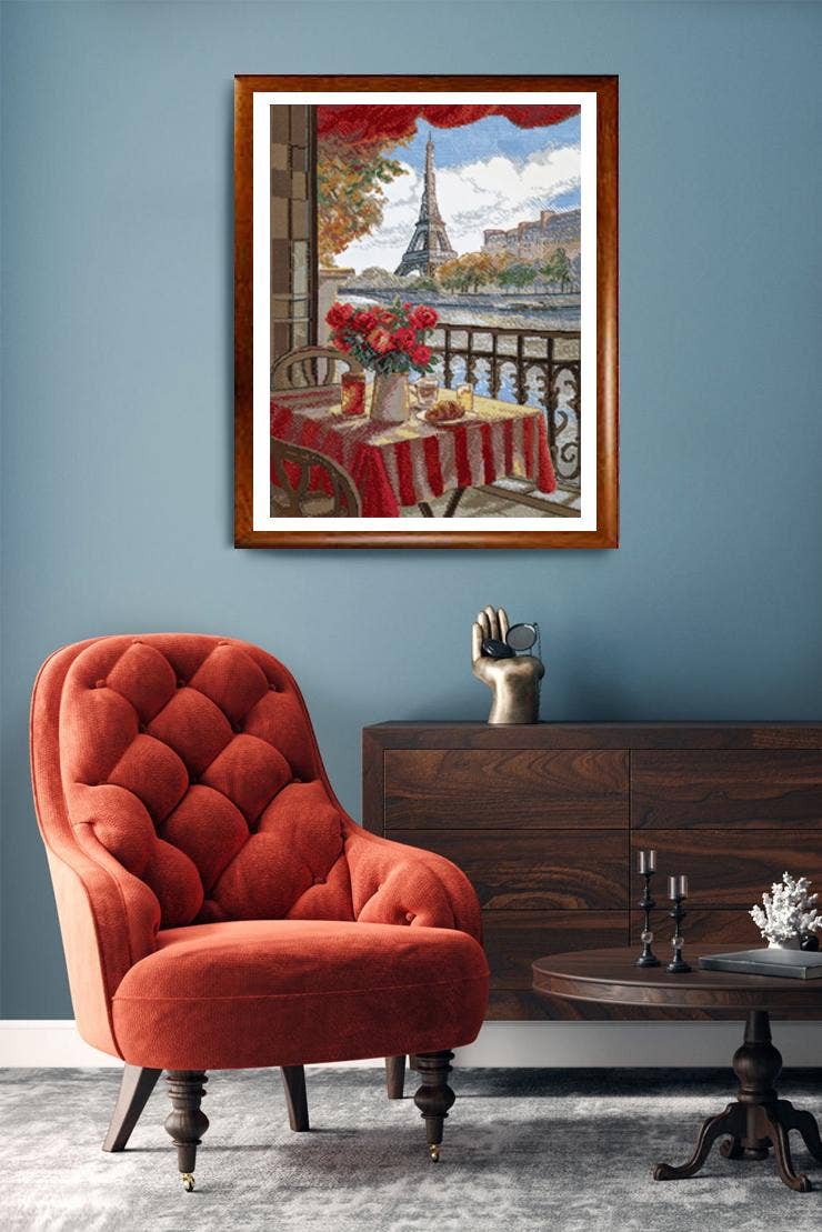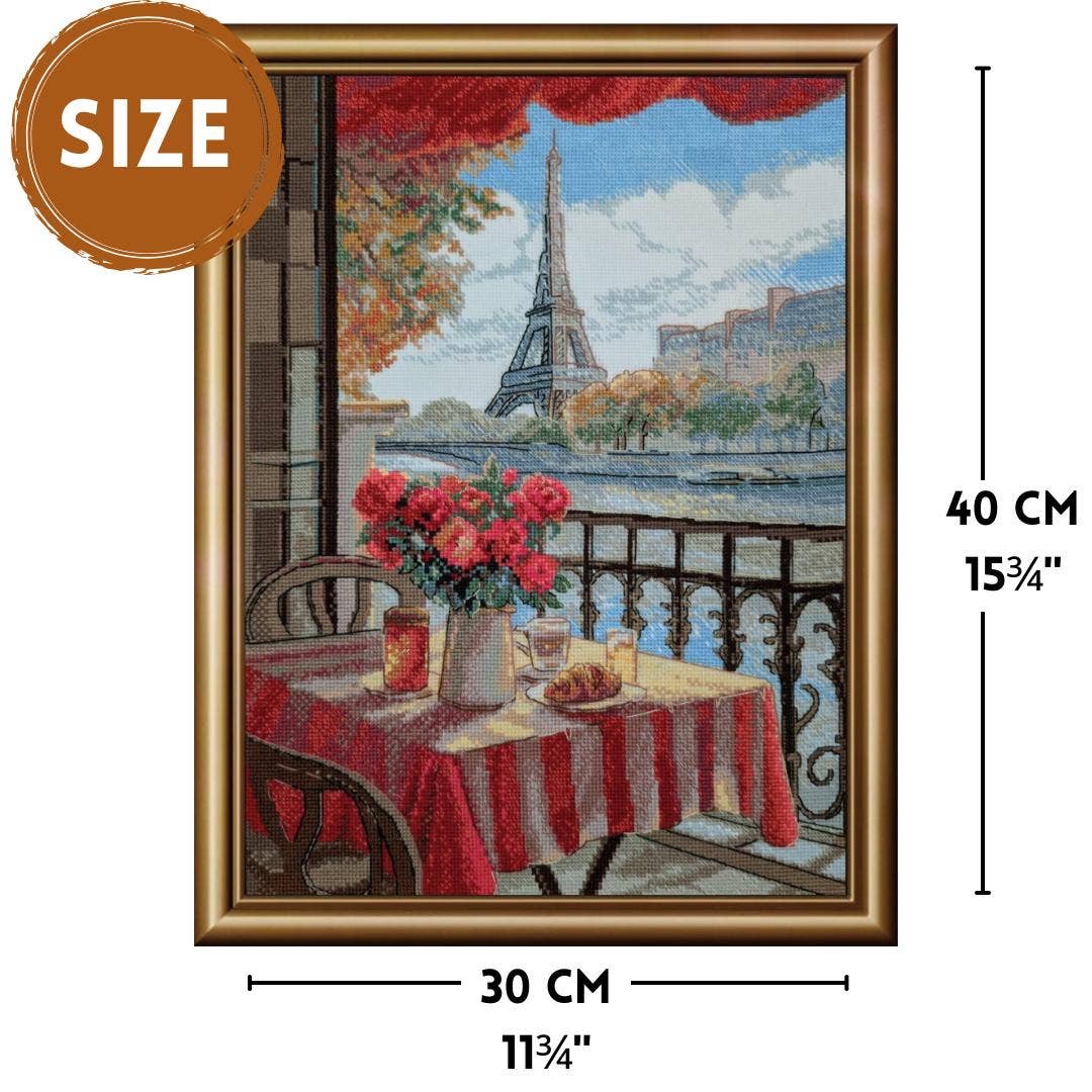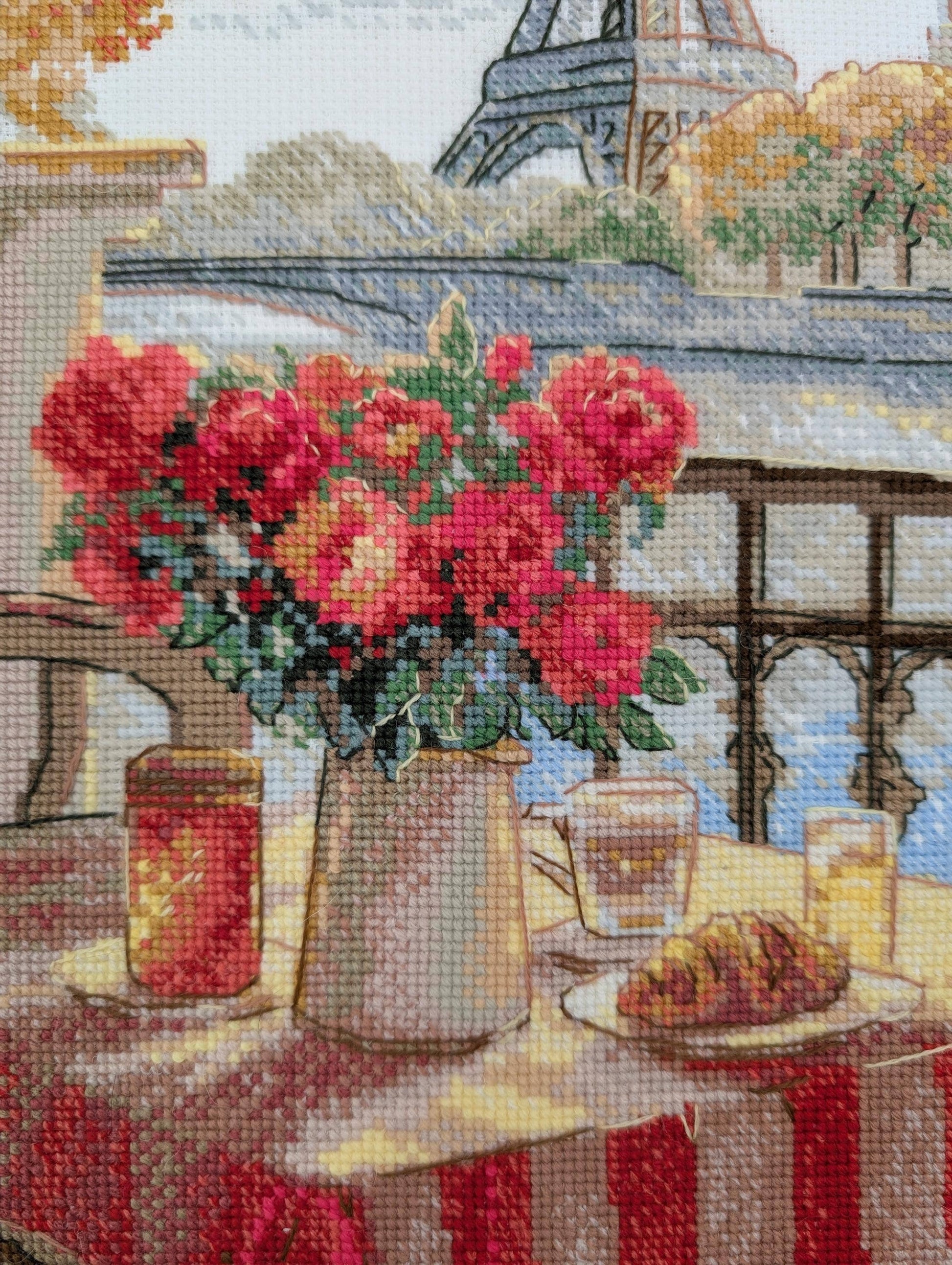 Disfruta de un bordado lleno de encanto parisino con el kit de punto de cruz Aine "París Soleado". Este diseño transporta al bordador a una tranquila mañana en París, desde la perspectiva de una acogedora terraza de restaurante. En primer plano, una mesa decorada con flores frescas y un delicioso desayuno francés junto al río Sena; de fondo, la majestuosa Torre Eiffel iluminada por la luz del sol. Una escena perfecta para quienes aman el romanticismo y la belleza de la Ciudad de la Luz.