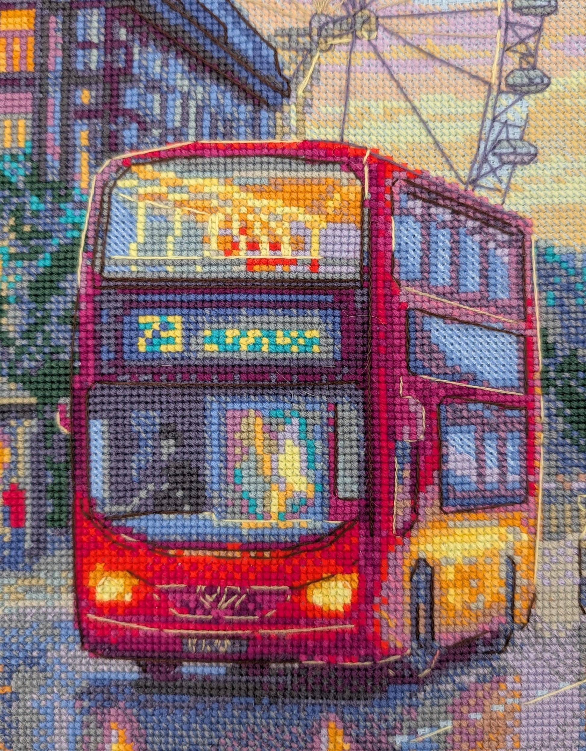 Ideal para quienes aman Londres y desean capturar su esencia en un proyecto de bordado elegante y lleno de detalles, este kit combina tonos suaves con vibrantes rojos y amarillos que destacan sobre un cielo dramático.