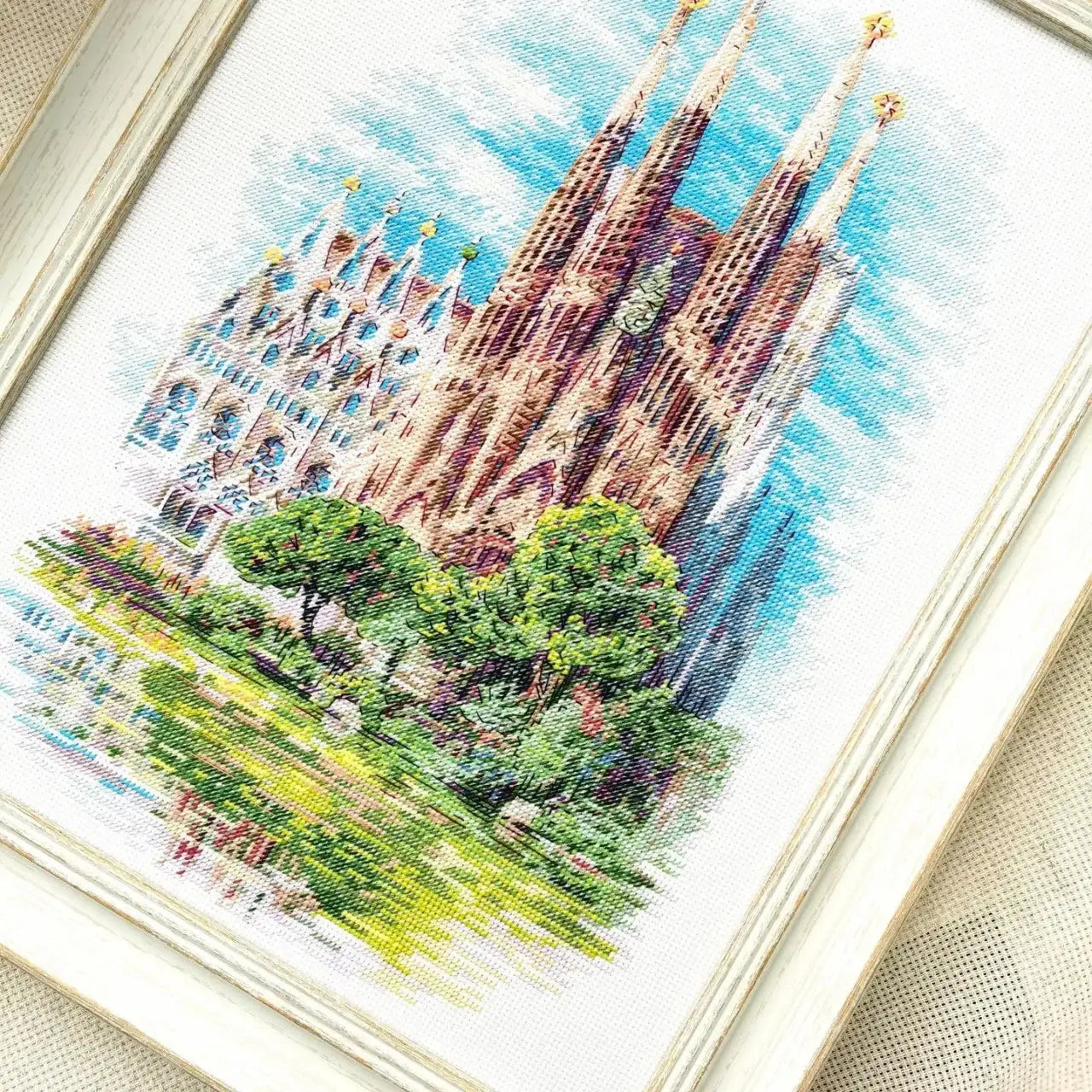 Rinde homenaje a uno de los monumentos más emblemáticos del mundo con el kit de punto de cruz “Sagrada Familia” de RIOLIS. Este diseño captura la majestuosidad de la basílica diseñada por Antoni Gaudí, mostrando sus imponentes torres y detalles arquitectónicos únicos, junto con una parte del encantador parque que se encuentra justo enfrente.