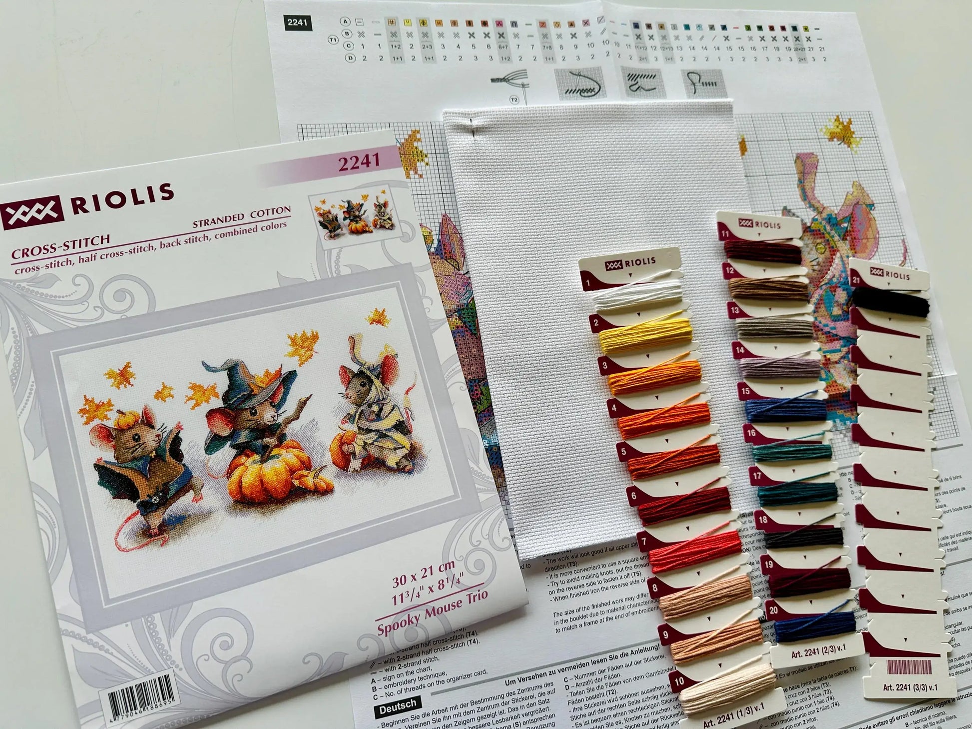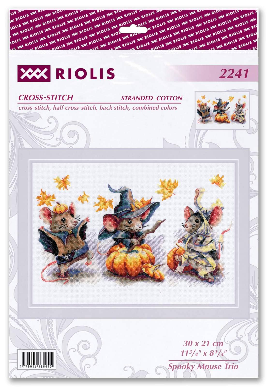 Kit de Punto de Cruz Riolis "Trío de Ratones Espeluznantes" - 2241