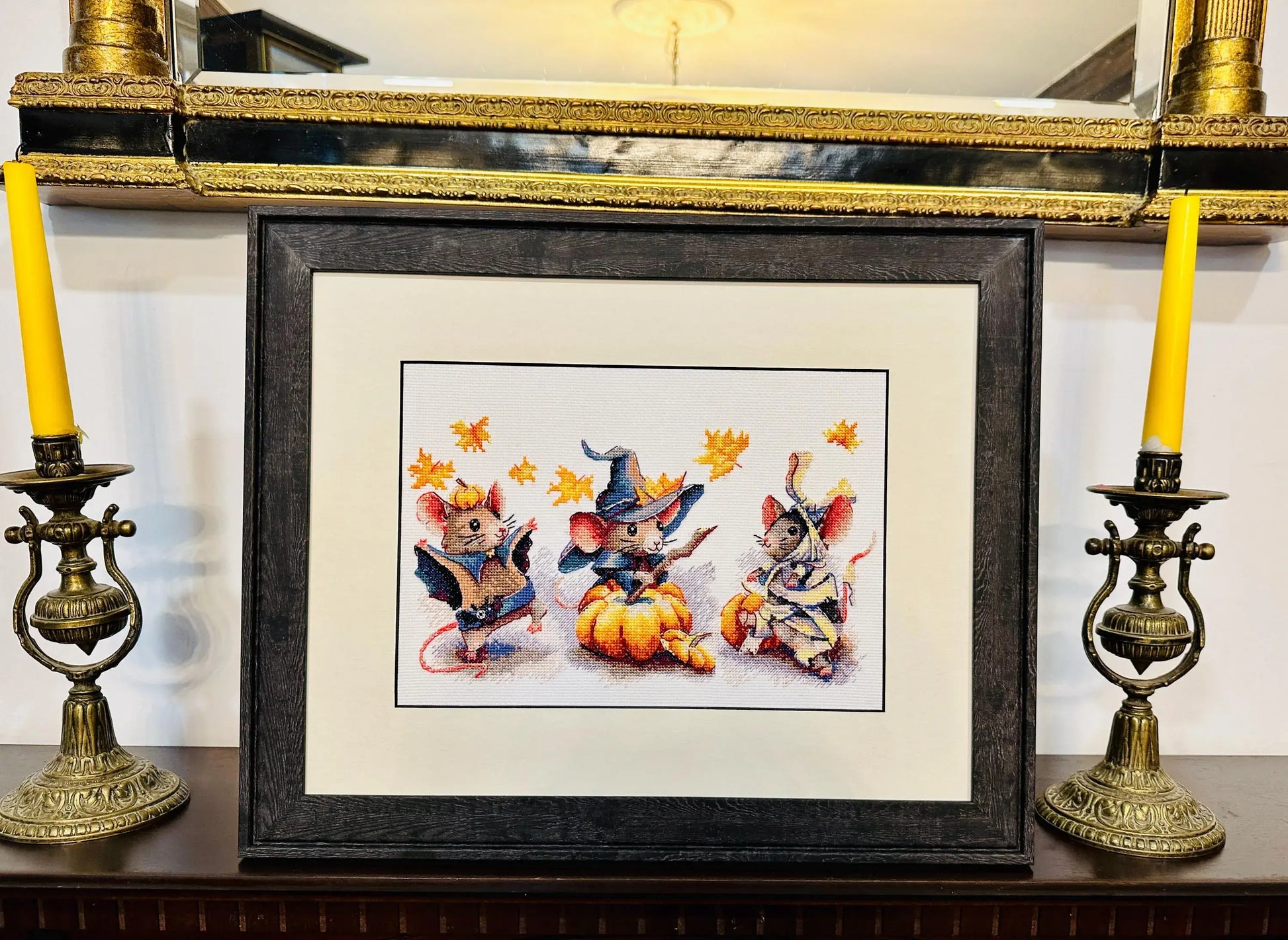 El kit de punto de cruz "Trío de Ratones Espeluznantes" de RIOLIS te permitirá bordar un gracioso trio de juguetones ratoncillos disfrazados de personajes típicos de Halloween: un vampiro, una bruja y una momia. Fusiona lo aterrador de esta noche tan especial con el encanto de estos tres ratones tan graciosos y adorables.