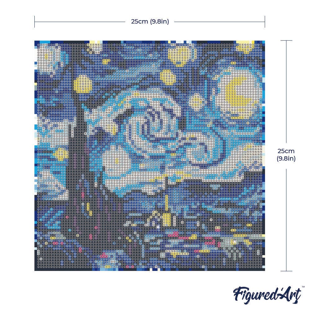 Kit de Punto Diamante Figured’Art "La Noche Estrellada de Van Gogh" (Lienzo con Bastidor 25×25 cm)