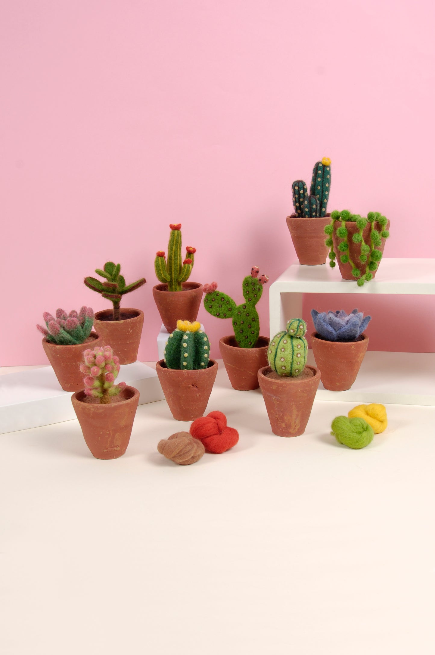 Dale vida a tu hogar con el Libro de inspiración DMC “Cactus y Suculentas”, una guía creativa de fieltro con aguja (needle felting) que incluye 10 proyectos originales paso a paso. En sus páginas descubrirás cómo elaborar cactus y suculentas realistas en mini macetas de terracota, combinando colores vivos y texturas suaves que aportan un toque natural sin necesidad de riego.