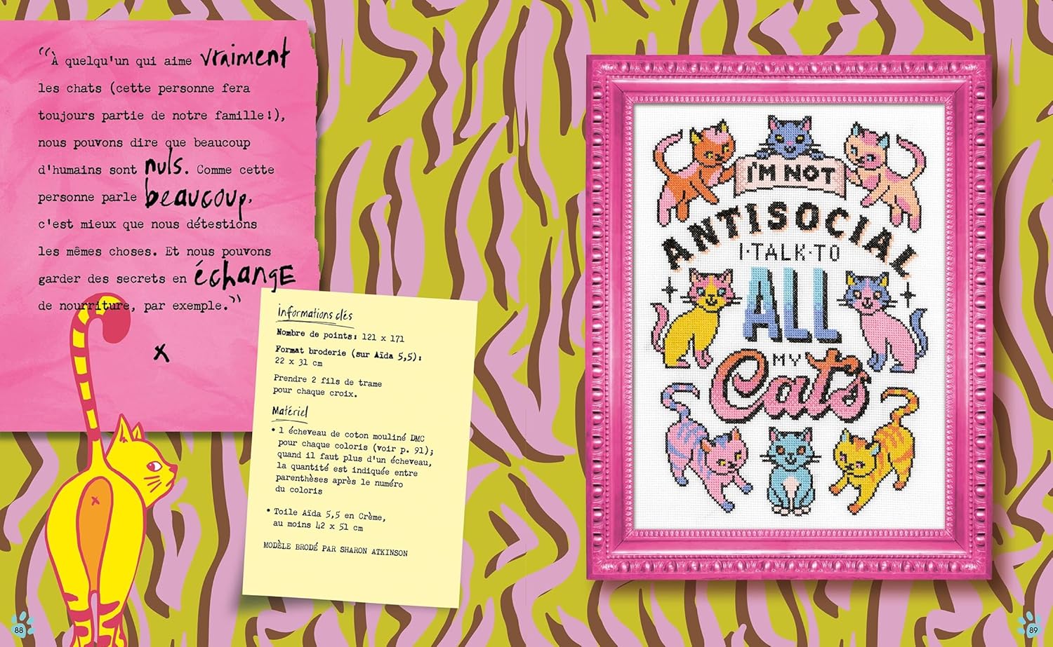 Celebra tu amor por los felinos con “Point de croix avec chattitude: 20 designs d’enfer”, el libro de Emma Congdon dedicado íntegramente a patrones de gatos en punto de cruz. Incluye 20 diseños adorables y pícaros con gráficos por símbolos e instrucciones fáciles de seguir, ideales para personalizar bastidores, láminas, cojines o prendas. Un imprescindible para bordadoras amantes de los gatos y de los proyectos modernos y coloridos.