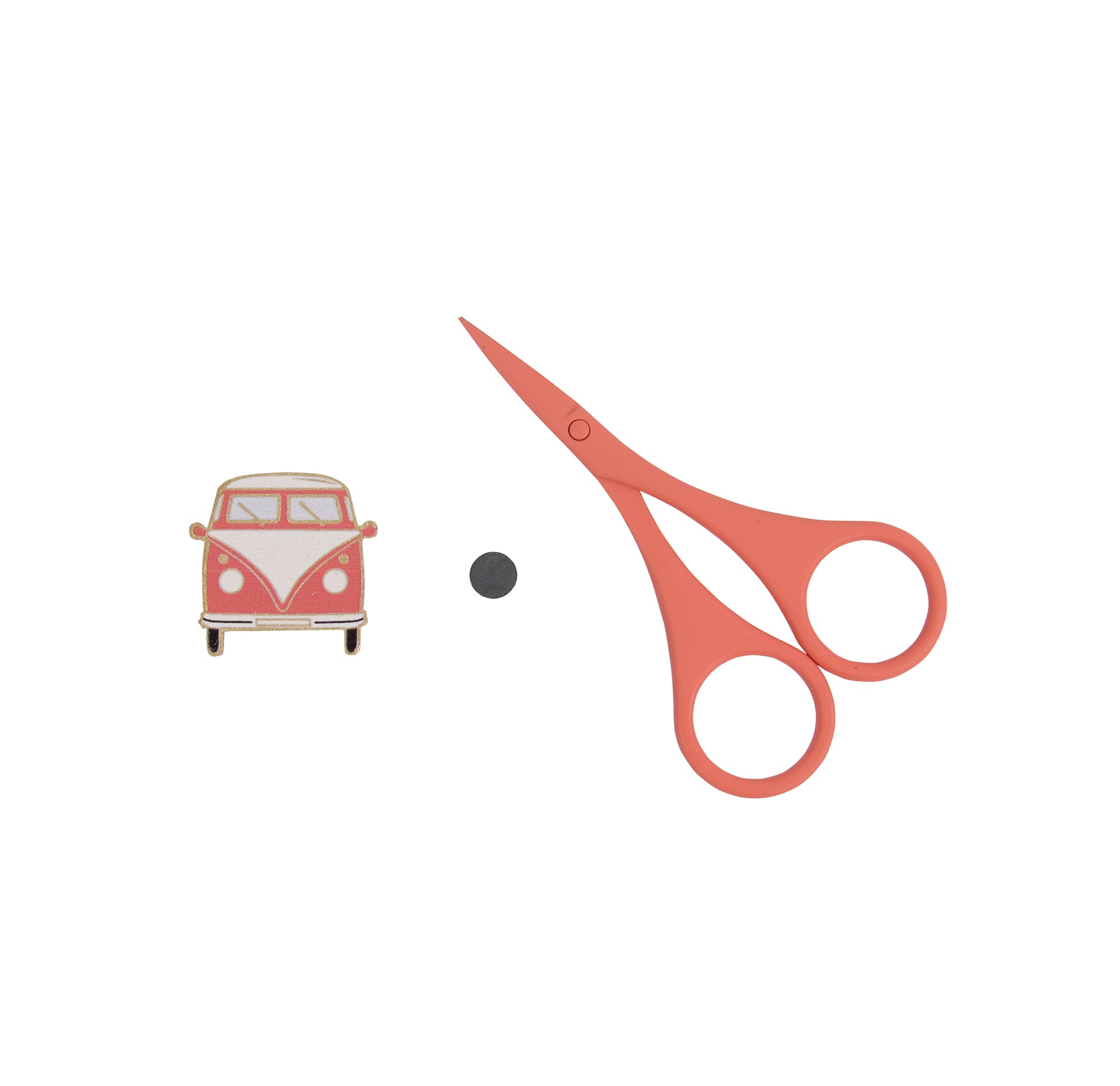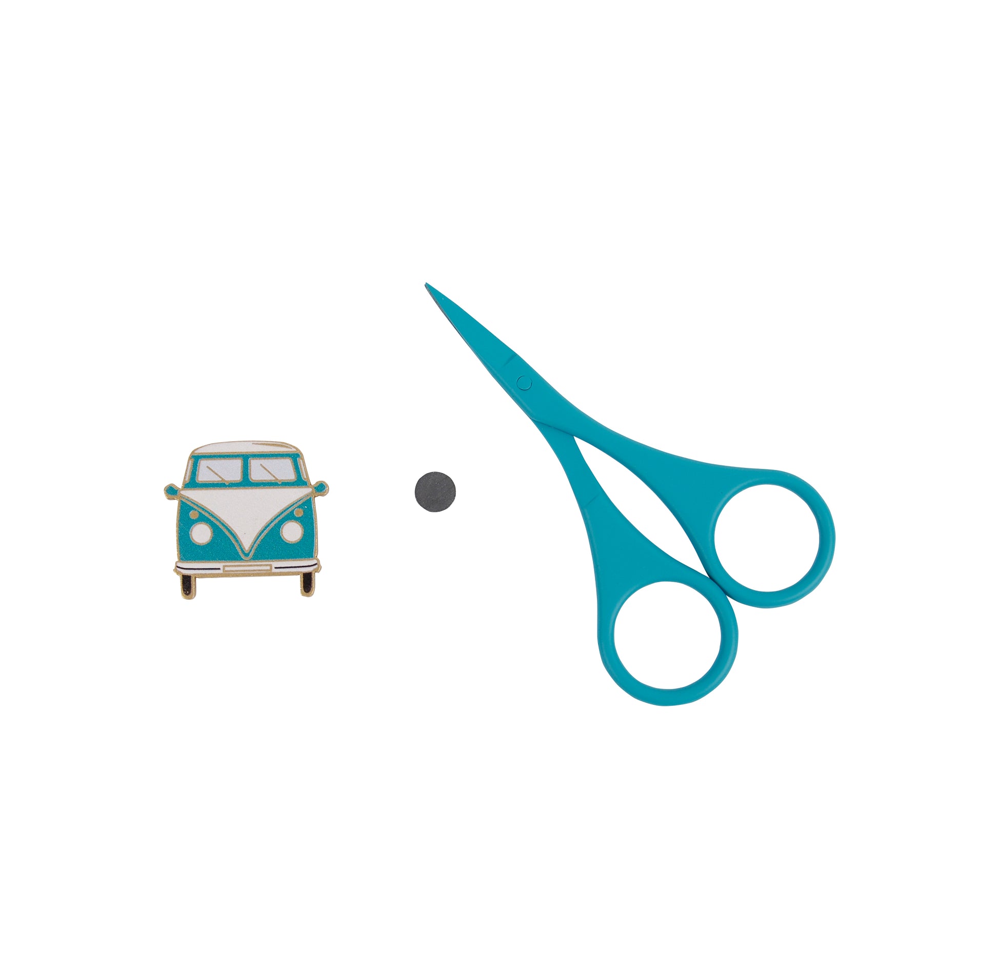 Descubre este práctico y original pack de DMC, ideal para bordadoras y amantes de la costura. Incluye unas tijeras de acero inoxidable totalmente coloridas con hoja recta y lisa, perfectas para cortar hilos y telas con precisión, junto a un imán para agujas con diseño de furgoneta camper, que mantendrá tus agujas seguras y siempre a mano mientras trabajas en tus proyectos.