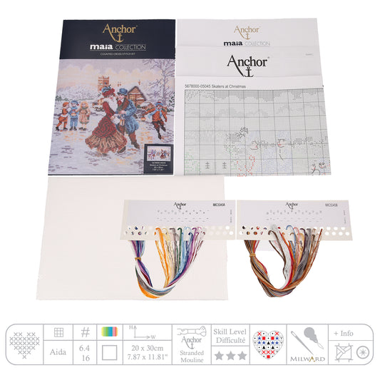 Kit Ponto Cruz Âncora "Patinadores no Natal" - Coleção Maia